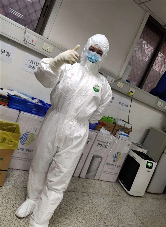 隨著大部分患者病愈出院,3月19日病區(qū)合并,周口港區(qū)援鄂醫(yī)療隊在駐地休整一天。因希望能在抗疫一線光榮加入共產(chǎn)黨,當(dāng)天上午許聽聽正利用閑暇時間,在宿舍寫入黨申請書,接到醫(yī)療隊集合的通知后,火速入列。