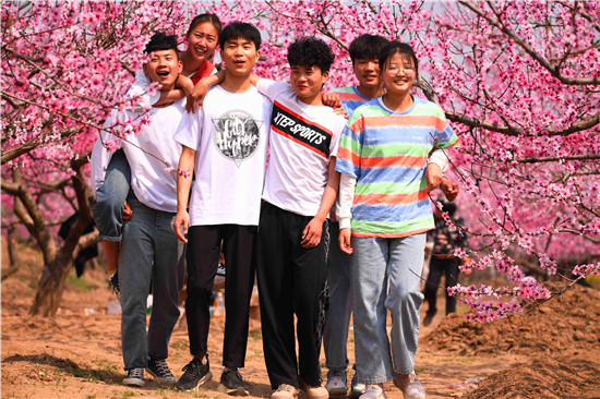 而在萬畝桃花深處,賞花的人們也是醉不知歸。大人孩子們神采飛揚,追逐賞花,探幽覓芳,玩得很嗨!還有一個時尚的人們,在桃花深處玩抖音、玩直播、拍視頻,與天下網(wǎng)友共賞花海之美。