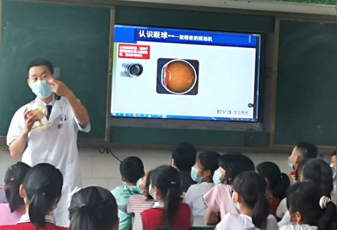 為了全面加強(qiáng)少年兒童近視綜合防控工作,關(guān)心、呵護(hù)少年兒童眼健康,幫助青少年學(xué)生養(yǎng)成良好的用眼習(xí)慣,減少青少年兒童近視發(fā)生率,在第二十五個(gè)“愛眼日”來臨之際,周口愛爾眼科醫(yī)院組織醫(yī)務(wù)人員圍繞活動(dòng)主題,精心備課、制作課件,走進(jìn)周口市韓莊小學(xué),向?qū)W生普及講解健康用眼相關(guān)知識(shí)。視光科主任彭濤在公益課上,從眼睛的作用、近視發(fā)生的原因、電子產(chǎn)品對(duì)眼睛的危害和如何愛眼護(hù)眼、科學(xué)用眼等方面進(jìn)行了詳細(xì)、生動(dòng)的講解。
