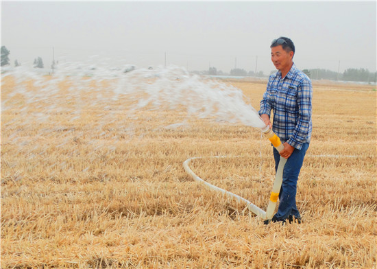 6月6日,沈丘縣周營鎮(zhèn)農(nóng)民正忙著抗旱“造墑”、“補(bǔ)墑”澆水,期待奪取秋糧豐收。 近期來,由于連續(xù)多日高溫?zé)o雨,土壤墑情差,無法播種秋作物。針對當(dāng)下嚴(yán)重的旱情,沈丘縣掀起“雙抗旱”(抗旱保苗、抗旱種秋)高潮。目前,該縣日出動勞力1.8萬余人,出動各類噴灌機(jī)械26000多臺(套),力保農(nóng)田播種的玉米出苗。