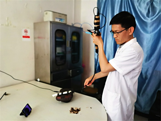 周口市婦幼保健院南院區(qū)負責(zé)人付玉圓說:徐醫(yī)生從2016年就開始進修學(xué)習(xí)呼吸內(nèi)鏡操作,先后去過鄭大三附院、吉林大學(xué)第一附屬醫(yī)院進修。回來后,為了練習(xí)手感和操作技術(shù),就自己弄材料,自制了簡易的模擬呼吸內(nèi)鏡用來練手。只要一有時間,就練習(xí)內(nèi)鏡操作。