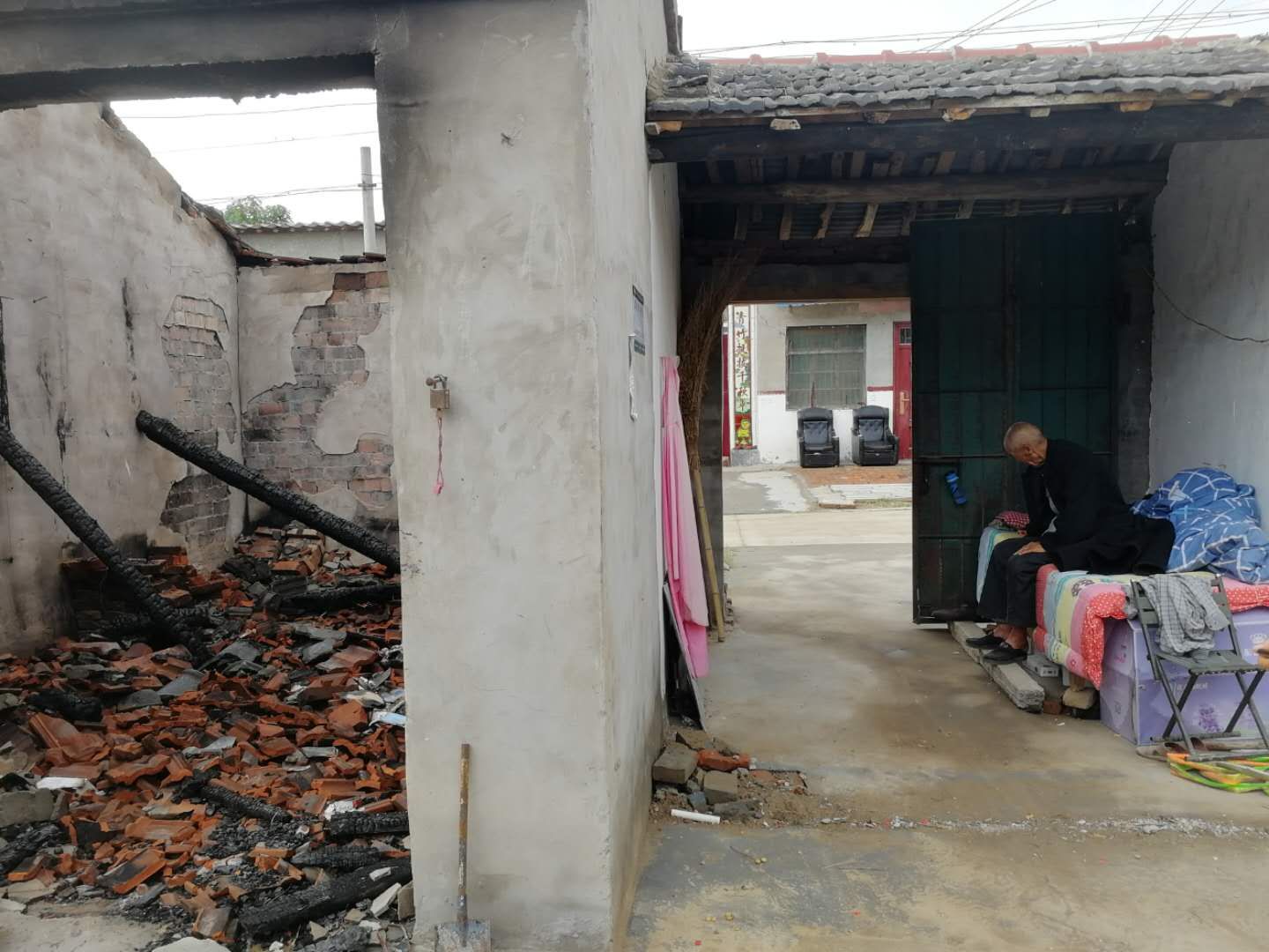 原來(lái),眼看著就到了脫貧攻堅(jiān)的驗(yàn)收期,2020年4月14日晚上10時(shí)許,李洪范年齡大,睡覺前有吸煙的習(xí)慣,自己在吸煙時(shí)不小心引發(fā)了火災(zāi),房屋、家電,還有剛?cè)〕鰜?lái)的1400元低保金燒了個(gè)干干凈凈,好在沒有人員傷亡,目前李洪范自己在大門過(guò)道中將就居住。