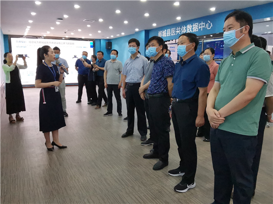 當(dāng)日上午9時,5個縣市的負責(zé)同志來到鄲城之后現(xiàn)場組成參觀團,進入鄲城縣政府投資3500萬元興建的全民健康信息化服務(wù)中心,并參觀了第二醫(yī)療健康服務(wù)集團(鄲城中醫(yī)院)的醫(yī)共體運營管理中心、醫(yī)保監(jiān)管中心和財務(wù)監(jiān)管中心“三大運營管理中心”。