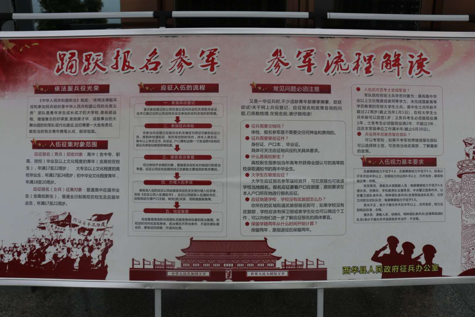為做好大學生征兵工作,西華縣人武部認真開展了多層次、全方位的宣傳發(fā)動??h人武部多次召開黨委會,分析大學生征兵形勢,研究制定層層宣傳發(fā)動方案。扎實開展大學生兵員潛力調(diào)查工作,挖掘大學生兵員潛力,及時登記造冊。全縣成立了60支由縣人武部干部職工、鄉(xiāng)鎮(zhèn)專武干部、村民兵干部參加的大學生征兵宣傳小分隊,分頭對轄區(qū)內(nèi)在家的各級各類院校畢業(yè)生和在校生,進行挨家挨戶、面對面的宣傳,把《2020年西華縣大學生征兵宣傳冊》發(fā)放到每一名大學生手中,做到一人不漏。為其算好“經(jīng)濟帳”、“ 政治帳”、“ 前途帳”。把針對大學生青年制定的最新調(diào)整的優(yōu)惠政策宣傳到位,最大限度發(fā)掘大學生征集潛力。同時,該縣把做深做細大學生征兵宣傳報名工作,作為完成征兵任務(wù)的重要基礎(chǔ),積極轉(zhuǎn)變思路,創(chuàng)新工作方法,靈活運用各種宣傳手段,千方百計增強宣傳發(fā)動的針對性、實效性。該部除采取散發(fā)傳單、懸掛橫幅、制作板報、張貼標語、現(xiàn)場咨詢等傳統(tǒng)方式外,還充分利用廣播、電視、微信、短信、電子屏等傳媒手段增強宣傳效果,做到廣播電視里有音有像,微信短信電子屏有征兵信息滾動發(fā)布,墻報上有文,橫幅標語上有宣傳口號,提高全民政治意識和國防觀念,切實讓大學生入伍優(yōu)惠政策宣傳不留死角。該部充分利用對現(xiàn)役軍人家庭逐戶走訪解難、贈送懸掛“光榮軍屬”牌匾、敲鑼打鼓送喜報等活動,在全社會大力營造“一人參軍、全家光榮”的鮮明導(dǎo)向,讓尊崇軍人的號召在西華縣落地,讓當兵光榮的傳統(tǒng)在群眾心中扎根,從而激勵大學生青年積極報名參軍的報國熱情。