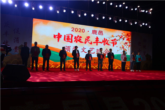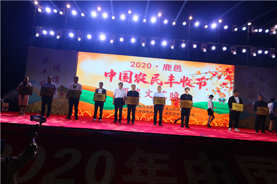 9月22日晚,由中共鹿邑縣委、鹿邑縣人民政府主辦的2020年鹿邑縣農(nóng)民豐收節(jié)文藝晚會在鹿邑縣文化中心廣場舉辦。晚會現(xiàn)場頒布了鹿邑縣“十佳家庭農(nóng)場”“十佳農(nóng)民合作社”“十佳特色農(nóng)產(chǎn)品品牌”“十佳返鄉(xiāng)創(chuàng)業(yè)脫貧致富帶頭人”“十佳脫貧致富先進(jìn)個人”五項(xiàng)獎項(xiàng),40名新型農(nóng)民(農(nóng)場、合作社)代表和10個特色農(nóng)產(chǎn)品品牌獲殊榮,他們用行動和產(chǎn)品充分展示了全縣現(xiàn)代農(nóng)業(yè)在過去一年中取得的輝煌成果??h領(lǐng)導(dǎo)雷申、楊所超、侯自峰、王曉征、張國慶、肖西國等出席豐收節(jié)晚會,并為獲獎?wù)哳C發(fā)榮譽(yù)證書和獎牌。