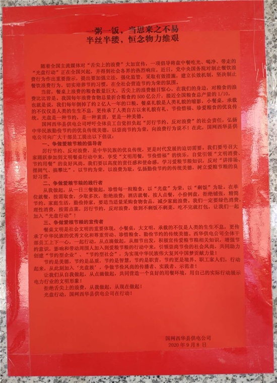 “節(jié)約糧食必須從我們自己做起,從身邊的人做起,更要從小事做起”。該公司職工紛紛表示,勤儉不是吃苦,“光盤”是節(jié)約,是習慣,是一種品質(zhì),更是對黨中央號召反對浪費的響應,對國網(wǎng)“三節(jié)約”精神的認真詮釋和體現(xiàn)!