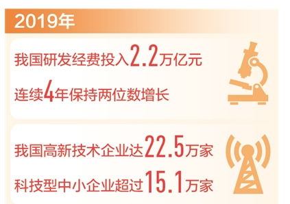 科技創(chuàng)新助推高質(zhì)量發(fā)展,我國(guó)創(chuàng)新型經(jīng)濟(jì)格局初步形成。截至2019年,全國(guó)高新技術(shù)企業(yè)達(dá)到22.5萬(wàn)家,科技型中小企業(yè)超過(guò)15.1萬(wàn)家。作為培育高新技術(shù)產(chǎn)業(yè)的重要載體,高新區(qū)5年來(lái)量質(zhì)同步提升。2019年,169家國(guó)家高新區(qū)生產(chǎn)總值達(dá)12萬(wàn)億元,經(jīng)濟(jì)總量占全國(guó)的1/10以上。