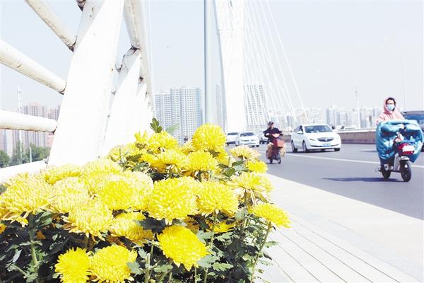 10月21日,市民從大慶路橋上經(jīng)過。記者在中心城區(qū)街頭看到,各式各樣的花卉、綠植擺放成各類造型,提升了城市顏值,為“創(chuàng)文”中的周口增色不少。見習記者 孫靖 攝