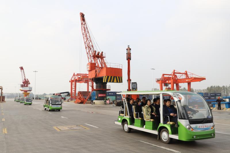 在中心港碼頭,工作人員向來(lái)賓詳細(xì)介紹了周口的航運(yùn)總體情況,以及在周口大力發(fā)展臨港經(jīng)濟(jì)的大背景下,周口港區(qū)臨港產(chǎn)業(yè)規(guī)劃布局和發(fā)展現(xiàn)狀。隨后,來(lái)賓乘坐觀光車,到港池前沿近距離了解碼頭運(yùn)營(yíng)情況,親身感受碼頭繁忙的作業(yè)現(xiàn)場(chǎng)同時(shí),來(lái)賓們向工作人員了解碼頭貨源、運(yùn)量、運(yùn)輸費(fèi)用等問(wèn)題,工作人員詳細(xì)解答。大家紛紛贊嘆:“想不到中原腹地?fù)碛腥绱藘?yōu)越的水運(yùn)條件,還建設(shè)了規(guī)模宏大的內(nèi)河港口,周口臨港經(jīng)濟(jì)發(fā)展氣勢(shì)如虹,前景一片光明!”②9