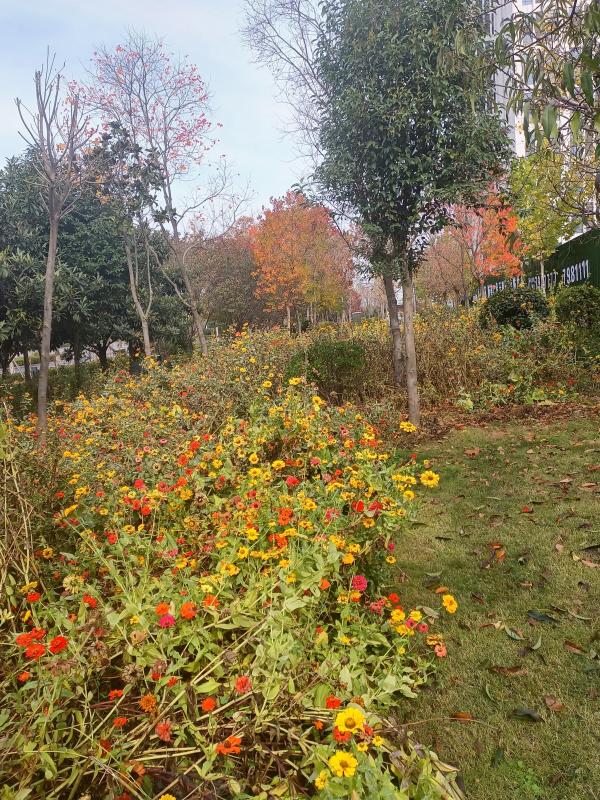 初冬時節(jié),雨后初晴,周口市區(qū)的一片小雛菊分外嬌艷,姹紫嫣紅的鮮花如同一片彩色的走廊,讓人不禁駐足欣賞。
