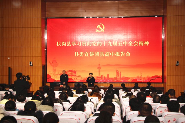 12月12日下午,扶溝縣高中德馨樓七樓會議室掌聲陣陣、座無虛席,扶溝縣學習貫徹黨的十九屆五中全會精神縣委宣講團縣高中報告會正在這里舉行,宣講會特邀縣教體局黨組書記葛偉進行宣講,局機關(guān)班子成員,縣高中班子成員和400余名教師參加了宣講會。