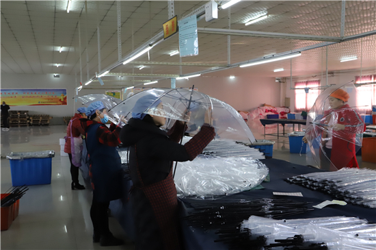 鄲城縣明確傘業(yè)招商專人專責(zé),以商招商、以情招商、以誠招商、以企招商,針對制傘企業(yè),在土地、資金、人才等方面優(yōu)先保障,并在廠房租賃、外貿(mào)出口等方面給予獎(jiǎng)勵(lì)。經(jīng)過精準(zhǔn)對接、取長補(bǔ)短,開放的鄲城終于受到廣大傘業(yè)客商的青睞,吸引了眾多傘企前來,目前已發(fā)展制傘企業(yè)60多家,形成了“縣有總部、鄉(xiāng)有工廠、村有車間、家有班組”的發(fā)展模式和特色產(chǎn)業(yè)鏈條。據(jù)悉,最大的企業(yè)年產(chǎn)量可達(dá)1200萬把雨傘。