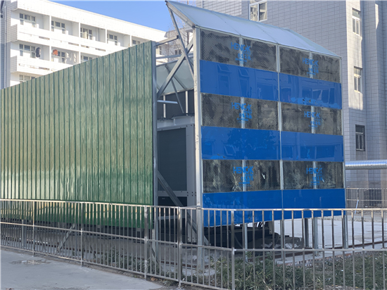 2020年12月30日上午,記者在位于嵩山路的周師西門處,隱約聽到“轟轟”聲,在周師西門向北約300米處,透過白色柵欄,記者看到一組被綠色鐵皮圍起來的空調(diào)外機(jī),外機(jī)總長(zhǎng)約20米,寬約5米,機(jī)組運(yùn)行發(fā)出“轟轟”的響聲。