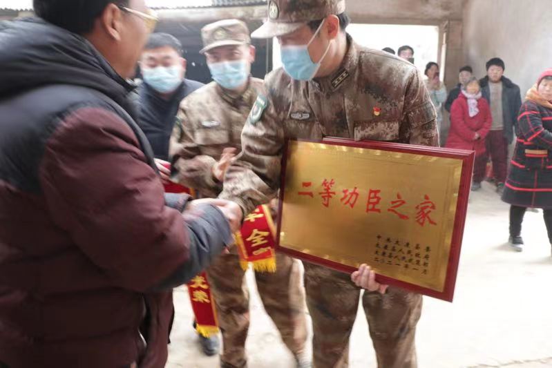 一人立功,全家光榮。為進(jìn)一步做好現(xiàn)役軍人立功獎(jiǎng)勵(lì)及喜報(bào)送達(dá)工作,激發(fā)廣大部隊(duì)官兵安心服役、建功軍營的熱情,讓軍人成為全社會(huì)尊崇的職業(yè)。連日來,根據(jù)疫情防控要求,太康縣采取集中時(shí)間、分散慰問的形式,由縣人武部和縣退役軍人事務(wù)局組成6個(gè)慰問組,以敲鑼打鼓登門送喜報(bào)的方式,為全縣84名二等功臣和三等功臣的現(xiàn)役軍人家庭送喜報(bào),營造“參軍報(bào)國、立功榮耀”的濃厚氛圍。 此舉不僅使廣大人民群眾對軍人多了一份尊崇和認(rèn)可,也使官兵和軍屬切身感受到“一人立功、全家光榮”的自豪感榮譽(yù)感,進(jìn)一步激勵(lì)了更多有志青年投身軍旅,報(bào)效祖國。