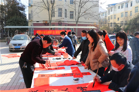 為增添節(jié)日氣氛,開啟喜迎新春的序幕,1月30日上午,鹿邑縣書法家協(xié)會組織書法家走進谷陽辦事處怡景花園小區(qū),開展為小區(qū)居民送福、送春聯(lián)義寫活動。