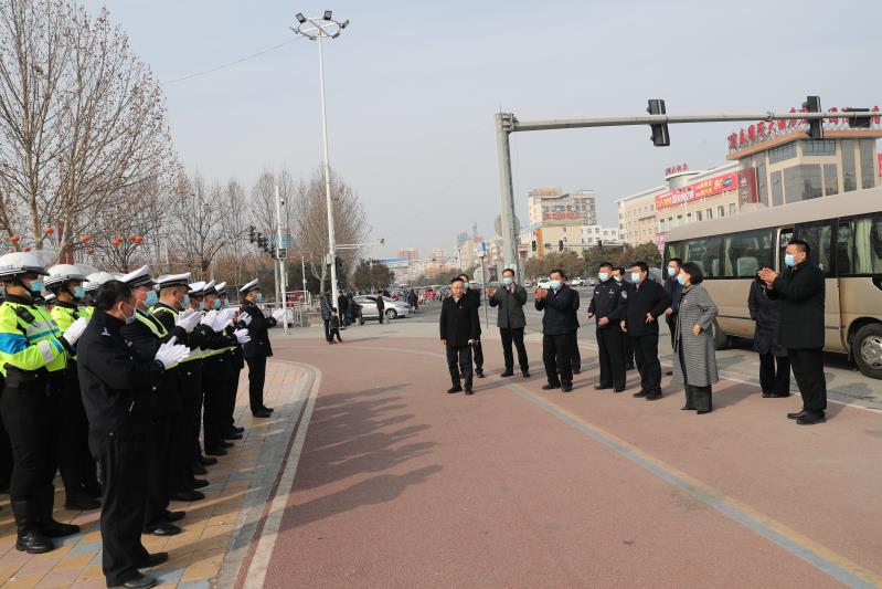 在縣人民廣場,最后王國璽、李錫勇一行看望慰問了正在執(zhí)勤的交警,與他們親切交談,對大家一年來作出的努力和貢獻表示感謝。勉勵廣大干警發(fā)揚甘于奉獻、勇于擔當?shù)木瘢S護好全縣社會大局穩(wěn)定,確保全縣人民度過一個歡樂祥和的節(jié)日。