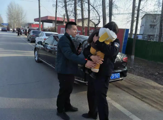 見到報(bào)警人時(shí),民警發(fā)現(xiàn)小女孩還在不停的哭泣,已為人父的顧一諾趕緊將小女孩抱入懷中,輕輕擦拭女孩臉上的淚水,不停的安慰。簡(jiǎn)單的向報(bào)警人了解情況后,顧一諾抱著小女孩開始在附近商鋪為其尋找家人,或許是因?yàn)轭櫼恢Z特別會(huì)哄小孩,在找尋途中,小女孩竟然趴在顧一諾的肩膀上睡著了,擔(dān)心孩子著涼,顧一諾和同事決定先將小女孩抱回派出所。