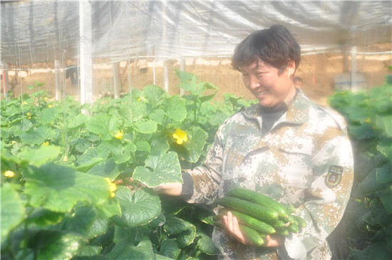 春節(jié)過后,我市新鮮蔬菜供需平穩(wěn),菜價未出現(xiàn)大幅度波動,其中本地蔬菜起到抑制菜價的作用。圖為扶溝菜農(nóng)正在自家大棚里采摘黃瓜。②8記者 金月全 通訊員 陳奎 攝