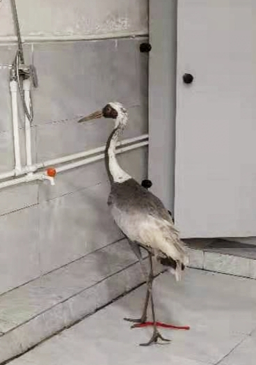2月24日,鄲城縣吳臺鎮(zhèn)村民在田地里干活時,發(fā)現(xiàn)一只“大鳥”,身體虛弱的趴在地里不能飛行,村民看著這只大鳥一雙腿非常長,像是丹頂鶴,他不敢怠慢,立刻撥打救助電話,鄲城縣自然資源局接到救助電話后,局長楊玉民、分管副局長李北斗高度重視,立即指派鄲城縣森林公安局及野生動植物保護和自然保護地管理股工作人員前往救助。經(jīng)周口市野生動物救助中心工作人員現(xiàn)場觀察初步鑒定后認為,這是一只白枕鶴,屬于國家一級保護珍禽。據(jù)百度了解:白枕鶴(學名:Grus vipio)體形與丹頂鶴相似,略小于丹頂鶴,而大于白頭鶴。上體為石板灰色。尾羽為暗灰色,末端具有寬闊的黑色橫斑。世界白枕鶴數(shù)量稀少,種群僅存不足5000只,白枕鶴棲息于開闊的平原蘆葦沼澤和水草沼澤地帶,也棲息于開闊的河流及湖泊岸邊,以及鄰近的沼澤草地,有時出現(xiàn)于農(nóng)田和海灣地區(qū),尤其是遷徙季節(jié)。村民發(fā)現(xiàn)的這只白枕鶴可能就是在遷徙過程中受傷才從空中掉落。