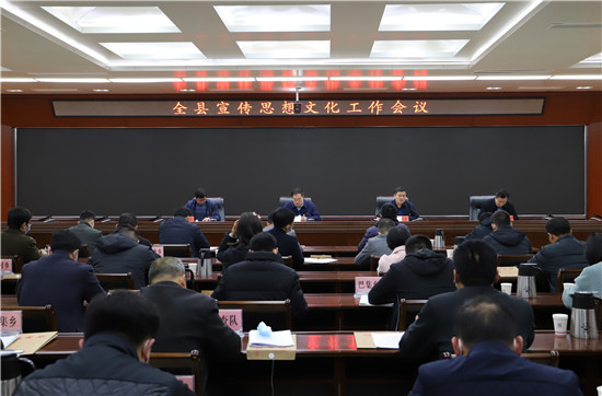 吳青鋒指出,2021年全縣宣傳思想文化工作的總體要求是,堅持以習近平新時代中國特色社會主義思想為指導,全面貫徹十九大和十九屆二中、三中、四中、五中全會精神,深入貫徹習近平總書記關于宣傳思想工作的重要論述和視察河南重要講話精神,貫徹落實全國、全省、全市宣傳部長會議和縣委十二屆九次全會暨縣委經濟工作會議精神,増強“四個意識”,堅定“四個自信”,做到“兩個維護”,聚焦“舉旗幟、聚民心、育新人、興文化、展形象”的使命任務,圍繞開局“十四五”、開啟新征程,圍繞立足新發(fā)展階段、貫徹新發(fā)展理念、構建新發(fā)展格局,緊扣慶祝建黨百年宣傳教育這條主線,以深化實施“八大工程”為總抓手,在推動習近平新時代中國特色社會主義思想深入人心上下功夫,在唱響愛黨愛國愛社會主義的時代主旋律上下功夫,在弘揚時代新風、培育時代新人上下功夫,在凝心聚力推動全縣經濟高質量發(fā)展上下功夫。強化使命擔當、銳意改革進取,在新的歷史起點上譜寫守正創(chuàng)新、攻堅克難的出彩篇章。