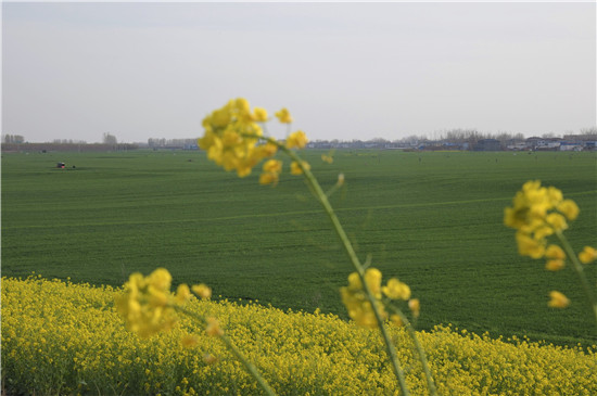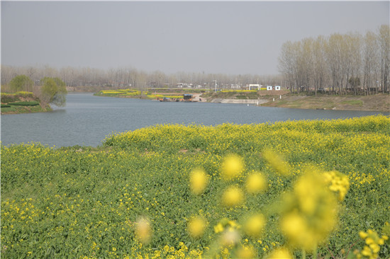 沙潁河一帶碧水從油菜花盛開的商水大地靜靜流過。