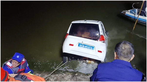 4月7日18時41分,周口市消防救援支隊淮陽區(qū)大隊接到群眾報警,稱淮陽區(qū)弦歌臺附近一汽車墜入龍湖,急需救援。接到報警后,淮陽區(qū)消防救援人員迅速到達現(xiàn)場。據(jù)現(xiàn)場目擊者稱,落水車輛為一輛白色電動汽車,車內(nèi)困有1名中年婦女、1名兒童,疑因誤掛倒擋不慎墜入龍湖。消防救援人員觀察發(fā)現(xiàn),車輛已經(jīng)沉沒,入水位置距岸邊約10米,湖水深4米,情況十分緊急。