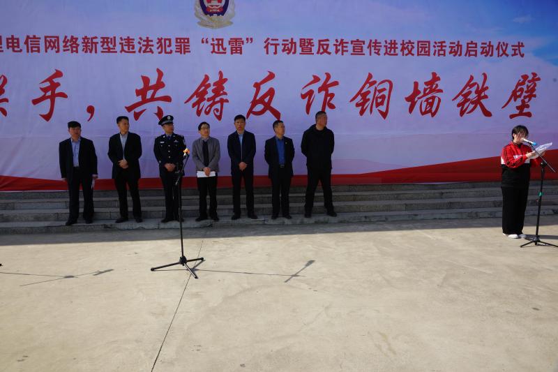 4月18日上午,項(xiàng)城市打擊治理電信網(wǎng)絡(luò)新型違法犯罪“迅雷”行動(dòng)暨反詐宣傳進(jìn)校園活動(dòng)啟動(dòng)儀式在項(xiàng)城體育館舉行。市委常委、政法委書記段曉,市人大常委會(huì)副主任張春志,市政府副市長(zhǎng)、公安局長(zhǎng)萬(wàn)東偉,市政協(xié)副主席王養(yǎng)嶺及市委政法委副書記薛峰、市教體局長(zhǎng)陳敏等出席活動(dòng)。段曉、萬(wàn)東偉分別講話。儀式由市政府辦公室副主任李金方主持。