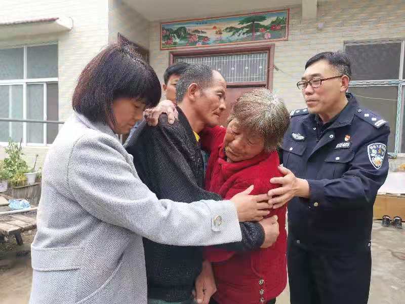 “我的兒啊,這下可找到你了,都認(rèn)為你再也回不來(lái)啦……”4月21日下午,在周口市淮陽(yáng)區(qū)馮塘鄉(xiāng)于劉寨村劉某家的四合院里,劉某73歲的老母親失聲痛哭,用顫抖的雙臂緊緊擁抱走失27年的兒子劉某,這一抱是久違了的27年母子情,母子倆泣不成聲。在場(chǎng)的民警和村民無(wú)不為之動(dòng)容,人人淚眼模糊。三里五村的村民聽說(shuō)后,也紛紛來(lái)到現(xiàn)場(chǎng),當(dāng)他們得知?jiǎng)⒛郴丶业膬?nèi)情,紛紛對(duì)派出所民警夸獎(jiǎng)。