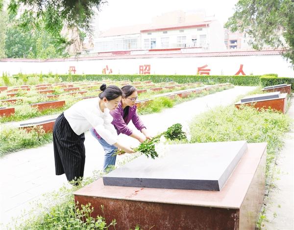 為表達(dá)對(duì)烈士的敬仰和懷念,記者和劉波濤烈士后人到鄲城烈士陵園,向劉波濤丁岐烈士合葬墓冢敬獻(xiàn)鮮花(如圖),聆聽(tīng)劉波濤丁岐的傳奇故事,感受烈士濃濃的愛(ài)國(guó)情懷(相關(guān)文字報(bào)道及視頻,周口報(bào)業(yè)傳媒集團(tuán)將陸續(xù)推出)。①9