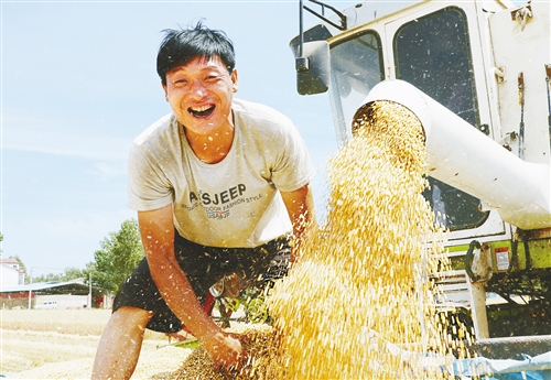 開封市尉氏縣邢莊鄉(xiāng)府李莊村,農(nóng)機服務(wù)隊幫助村民收獲小麥。 李新義攝(中經(jīng)視覺)