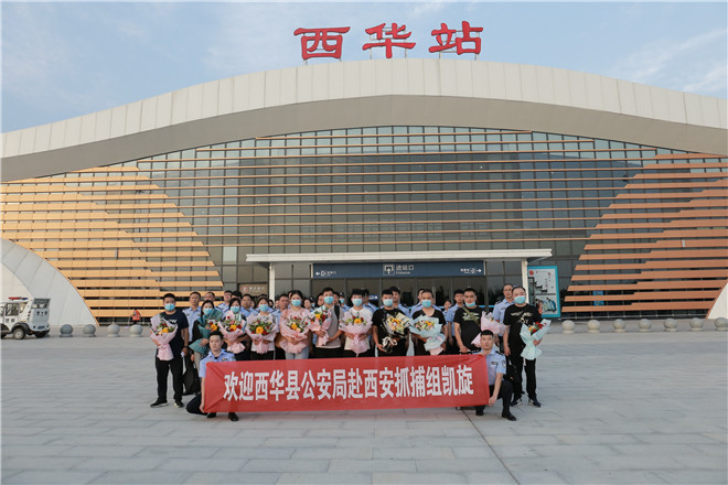當(dāng)天,西華縣公安局在鄭阜高鐵西華站舉行歡迎儀式,迎接赴西安抓捕組凱旋歸來。特警在站臺上排列整齊、嚴(yán)陣以待,列車準(zhǔn)時??康秸?,7名犯罪嫌疑人隨即被押解下車,全副武裝的特警立即上前進(jìn)行押解交接,押往在高鐵出站口等候的裝甲車上。至此,歷經(jīng)三天三夜,一起電信網(wǎng)絡(luò)詐騙團(tuán)伙案成功告破。