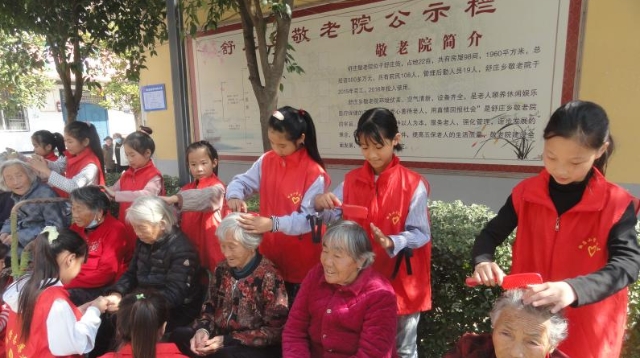 ?10月13日,商水縣舒莊鄉(xiāng)杜店小學(xué)的愛心志愿者來到舒莊鄉(xiāng)敬老院為老人們梳頭。