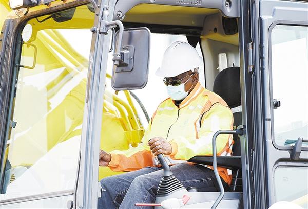 10月21日,博茨瓦納總統(tǒng)馬西西在拉莫茨瓦舉行的洛巴策供水管線項(xiàng)目開(kāi)工儀式上操作挖掘機(jī)。
