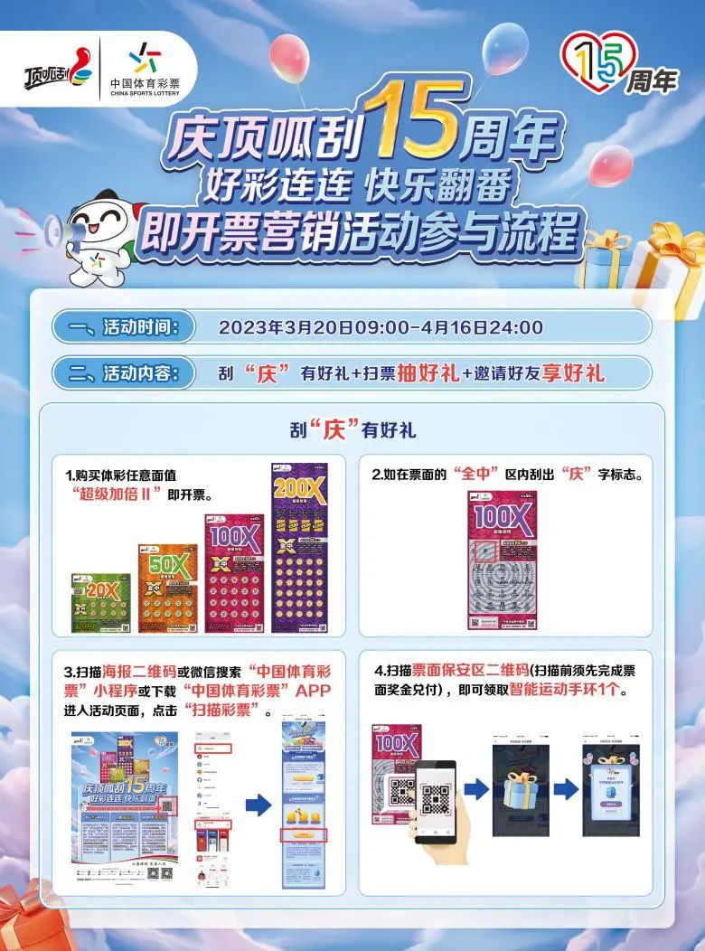 注:活動票種為2023年上市的新品(見海報票樣圖示),標志只預埋在彩票“全中”區(qū)位置。