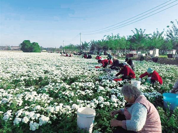 秋菊有佳色,裛露掇其英。11月7日上午,記者走進(jìn)鹿邑縣宋河鎮(zhèn)張辛村,映入眼簾的是一片絢爛的菊花海洋,一團(tuán)團(tuán)、一簇簇的菊花競(jìng)相盛開(kāi),伴著習(xí)習(xí)秋風(fēng),輕輕搖曳,淡雅的菊香溢滿(mǎn)田野。黃澄澄的菊花叢中,村民們正忙著采摘,大家邊聊邊忙活,呈現(xiàn)出一派繁忙的景象。