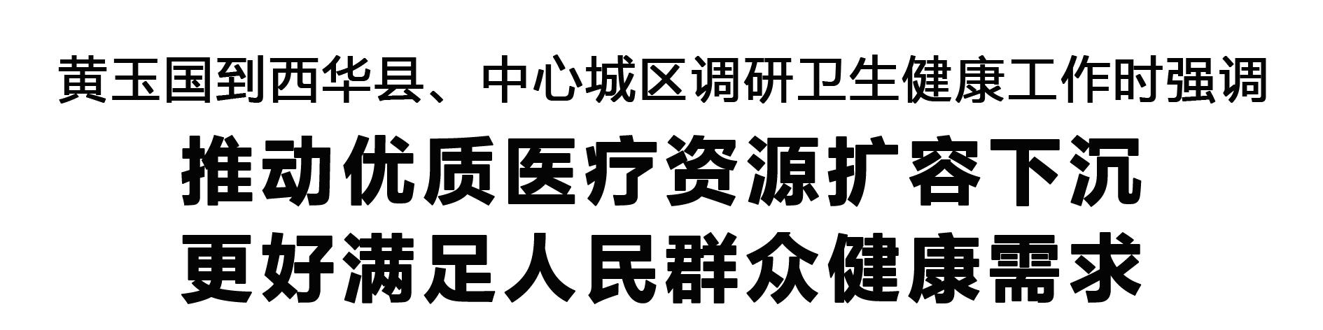 本報(bào)訊 (記者 王艷) 12月9日,市委書(shū)記黃玉國(guó)到西華縣、中心城區(qū)調(diào)研衛(wèi)生健康工作,強(qiáng)調(diào)要深入貫徹黨的二十屆四中全會(huì)精神和習(xí)近平總書(shū)記關(guān)于衛(wèi)生健康工作的重要論述,認(rèn)真落實(shí)省委十一屆十次全會(huì)精神,全面深化醫(yī)藥衛(wèi)生體制改革,加快補(bǔ)齊公共衛(wèi)生體系短板,持續(xù)推動(dòng)優(yōu)質(zhì)醫(yī)療資源擴(kuò)容下沉,更好滿足人民群眾健康需求。