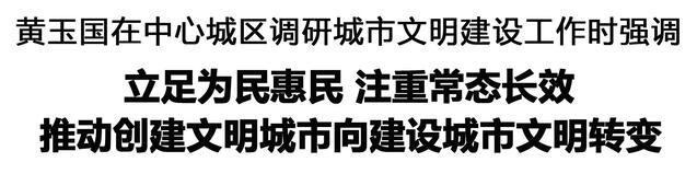 調(diào)研中,黃玉國強(qiáng)調(diào),從創(chuàng)建文明城市到建設(shè)城市文明,是工作理念的轉(zhuǎn)變,也是工作實踐的深化拓展。要更加注重常態(tài)長效,堅持融入日常、抓在經(jīng)常,強(qiáng)化機(jī)制保障,鞏固拓展文明城市創(chuàng)建成果。要更加注重精細(xì)治理,強(qiáng)化問題導(dǎo)向,下足“繡花功夫”,提升網(wǎng)格化管理服務(wù)質(zhì)效,讓群眾生活更方便、更舒心。要更加注重成風(fēng)化人,大力培育和踐行社會主義核心價值觀,加強(qiáng)教育引導(dǎo)和典型選樹,堅持法治和德治相結(jié)合,弘揚(yáng)崇德向善的文明風(fēng)尚,不斷提升市民文明素養(yǎng),讓文明內(nèi)化于心、外化于行。要更加注重全民參與,堅持問計于民、問需于民、問效于民,搭建參與平臺,凝聚多元合力,營造共建共治共享的良好氛圍。