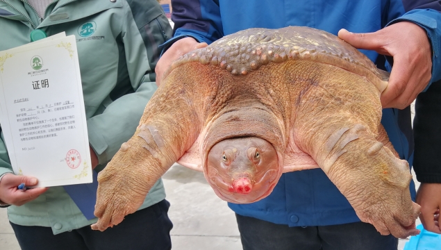近日,鄲城縣自然資源局接到縣城市管理局公園管理辦公室工作人員救助電話,稱在人民公園岸邊又發(fā)現(xiàn)一只“大老鱉”。接到救助電話后,該局領(lǐng)導(dǎo)立即指派野生動(dòng)植物保護(hù)和自然保護(hù)地管理股工作人員前往現(xiàn)場(chǎng)救助?!?a href="http://www.aplusgb.com/content/2021-03/23/content_925978.html" target="_blank" >[詳細(xì)]
