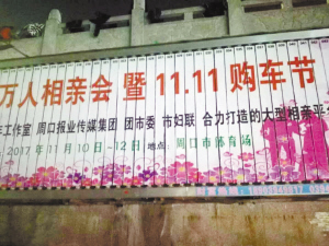 11月12日,由市委組織部、共青團周口市委、市婦聯(lián)、周口報業(yè)傳媒集團主辦的周口首屆大型相親會暨雙11購車節(jié)圓滿落幕。……[詳細]