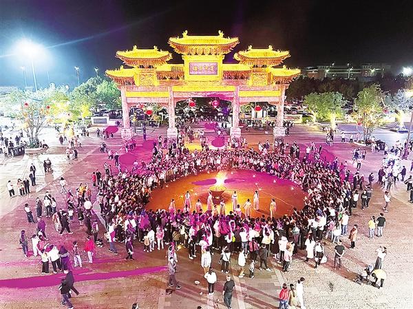 近日,游客在周口建業(yè)運河古鎮(zhèn)篝火晚會歡聚。近期,這里天天都會有盛大的篝火晚會。