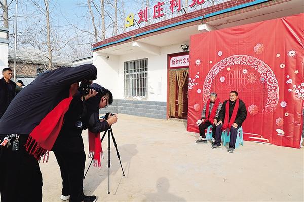 1月21日,攝影師為村民拍攝照片。當天,周口日報社攜手周口市攝影家協(xié)會,到淮陽區(qū)馮塘鄉(xiāng)劉莊村開展慰問活動。此次活動不僅為村民免費拍攝夫妻照與全家福照,還向村民贈送了春聯(lián)和羊毛圍巾,為他們送上濃濃的祝福。