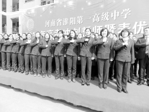 3月21日,淮陽(yáng)一高舉行 “高考百日沖刺”誓師大會(huì)。校長(zhǎng)王業(yè)生及高一、高二、高三年級(jí)全體師生參加了會(huì)議。青年教師代表付士翔、家長(zhǎng)代表張鳳啟及學(xué)生代表分別進(jìn)行了充滿激情的發(fā)言。在距2015年高考還有100天的日子里,師生莊嚴(yán)宣誓:“以頑強(qiáng)的意志、百倍的激情、無(wú)窮的潛力,以最刻苦的精神、最堅(jiān)韌的毅力,全力以赴,奮勇?tīng)?zhēng)先,爭(zhēng)分奪秒,苦戰(zhàn)百日,決戰(zhàn)高考,誓創(chuàng)輝煌。”(豆紀(jì)鋒 攝)