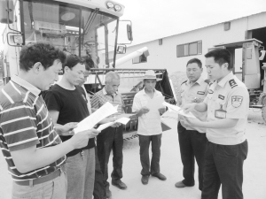 昨日,商水縣舒莊鄉(xiāng)派出所民警正在杜店村遠豐農機專業(yè)合作社向農機手宣傳“三夏”生產安全知識。為確?!叭摹鄙a安全,舒莊鄉(xiāng)派出所印發(fā)2000份《三夏安全生產知識宣傳單》,組織民警深入田間地頭和農家小院向農機手們面對面進行安全生產宣傳。(喬連軍 攝)